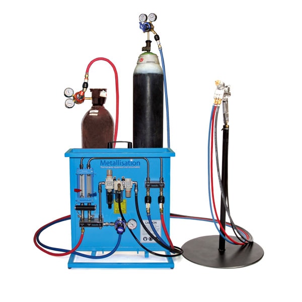 El equipo Metallisation MK61 es un sistema de rocío por flama alimentado por oxigeno-acetileno, utilizado principalmente en Ingeniería para revestimientos por rocío de acero, bronce, cobre y en mayor importancia molibdeno. La pistola robusta y ligera ofrece la posibilidad de recuperar piezas dañadas en aplicaciones de tamaño pequeño y mediano. El molibdeno también se puede rociar con el equipo MK61 desde un revestimiento adherente suave hasta un revestimiento muy duro y resistente al desgaste. El sistema MK61 se puede usar para revestimientos anticorrosión donde el propano no se puede conseguir fácilmente.