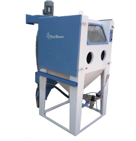 El gabinete de chorro de succión se basa en el principio de chorro de inyección de succión. El gabinete de chorro de arena industrial asegura el trabajo continuo y no interrumpe el ciclo de voladura. Se utiliza para componentes / partículas ligeras y medianas donde la superficie se va a limpiar o desbarbar o para proporcionar un acabado mate fino. Funciona según el principio venturi para obtener abrasivo desde una tolva de almacenamiento no presurizada hasta la pistola de chorro, donde se mezcla con la corriente de aire comprimido y se impulsa contra la superficie de trabajo o la superficie de chorro. Las máquinas de chorro de succión se reconocen más fácilmente al tener dos mangueras, es decir, para aire y medios abrasivos que corren hacia la pistola de chorro.