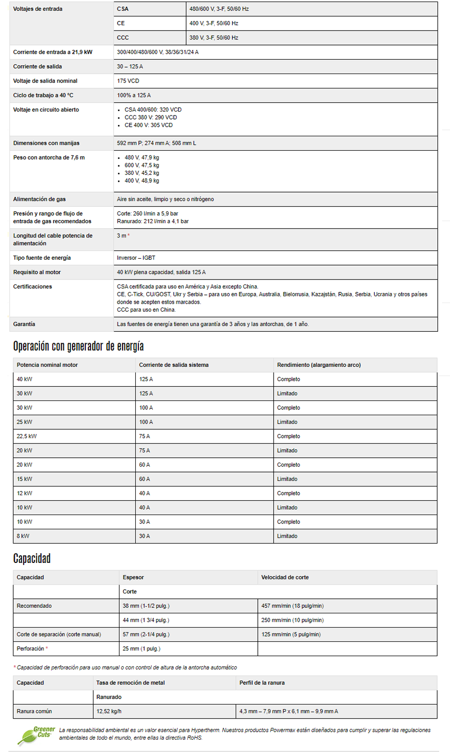 | Powermax125 Manual del operador Revisión 3 (Español / Spanish) | Descargar |
